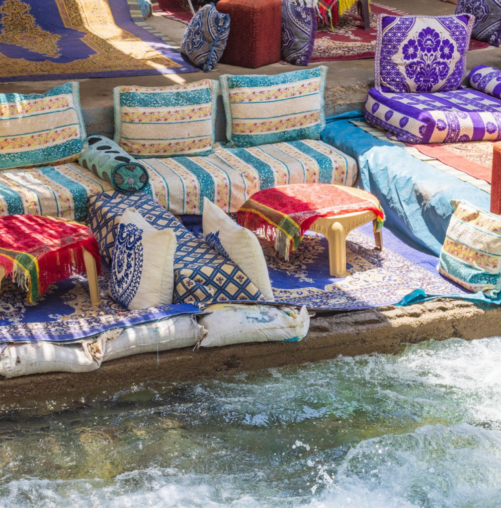 Explore the valley full of green fields and olive tree, enjoy a tasty local Tajine overlooking the river or have a table arranged for you in the cool river.